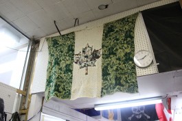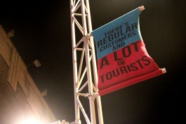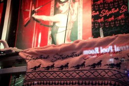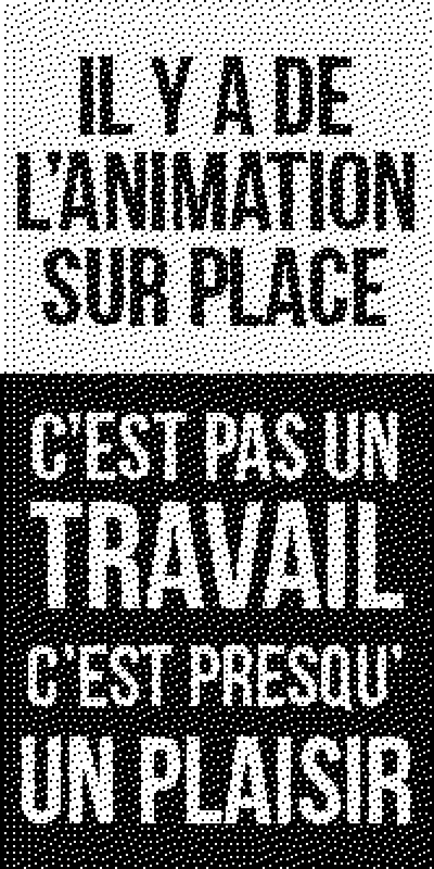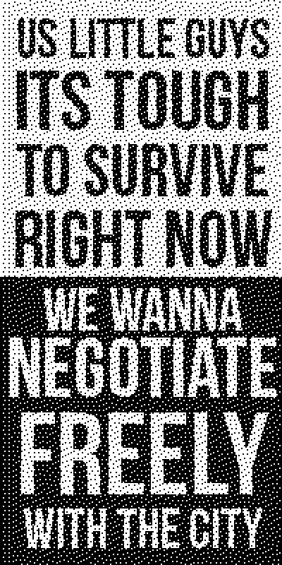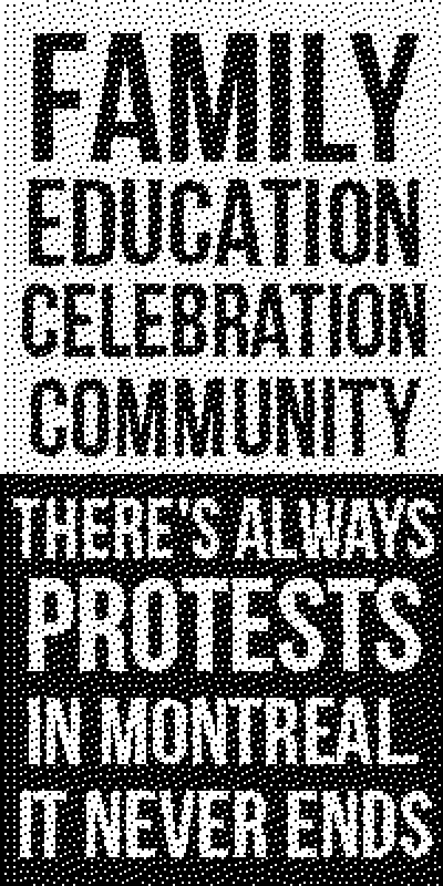 FAIR ISLE MARKERS are a series of knitted textile banners, displaying quotations taken from the interviews, installed around the city. The texts are deliberatley unattribited, forcing us to guess at the author, and interpret the meaning ourselves. An additional series of pictoral patterned textiles were installed at shops, re-mixing the visual iconaography of each site as traditional fair-isle motifs. The banners were designed by Sam Meech and Marilene Gaudet, and knitted by Marilene Gaudet and Lysanne Latulippe.