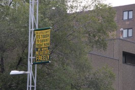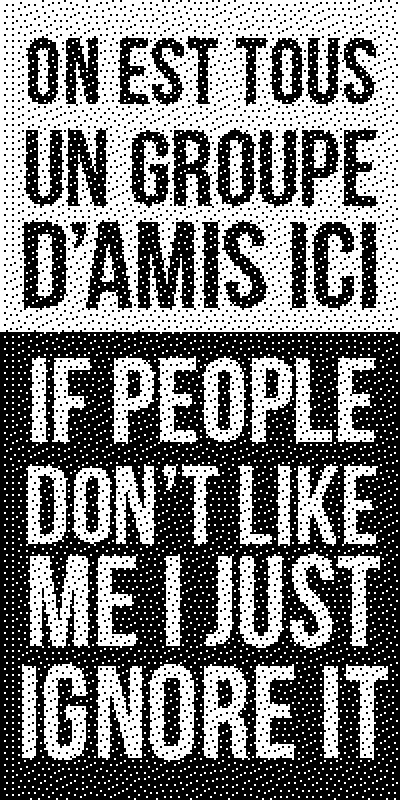 The banners were originally exhibited as part of ESPACE COMMUN. FAIR ISLE MARKERS is one of a series of works , collectively entitled - "On est tous un groupe d’amis ici” (We are all friends here) - created with MTL artist Marilene Gaudet, that also audio interviews, interactive installation, and a stop motion knitted animation.