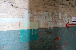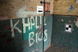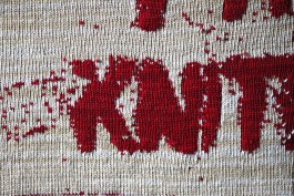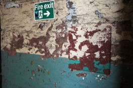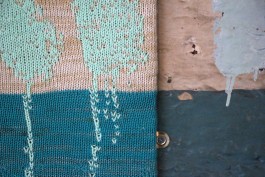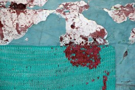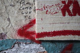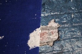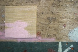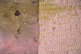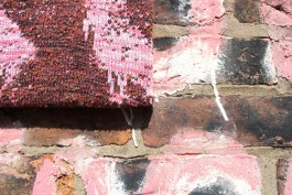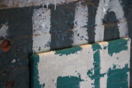 Twelve knitted tiles recreate discrete 40cm square samples of these walls, capturing the colours, marks and patterning, and attempting to re-render them as knitted textile. The resulting text-tiles are reinstalled at the site, over the original paintwork. In doing so, the complex layers of texture and history have been captured, reduced and 'fixed' - they act as markers for posterity, textural samples of the archive. The final installations draw attention to these layers of history, and yet they are themselves ambient, blended into the background, easily overlook. The aging of the building has been superfically arrested, though in reality its fate has been sealed.