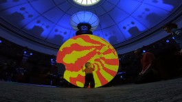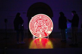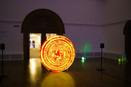 PORTAL uses a circular projection mapped feedback system to generate complex patterns, digitally coloured and manipulated using the software Isadora. As users enter the space of the camera / projection, they trigger a series of visual ripples that soon become abstracted, forming new patterns. Interactions also trigger layers of sound that reinforce a sense of entanglement. Hypnotic, enchanting, almost alive. PORTAL creates a window in space-time - a glimpse to another dimension.