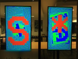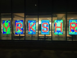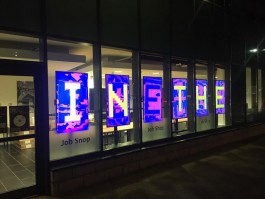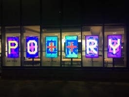 SCREEN POEM is generative micro poetry public art installation for windows - 6 screens display a series of short poems using words of 6 letters or less on each line. The letterforms emerge from a soup of video feedback, generating live organic patterns. Passers by create ripples in the text, and you can even submit your own micro poems for the screen! Use the form above, or the hashtag #ScreenPoem on Twitter.